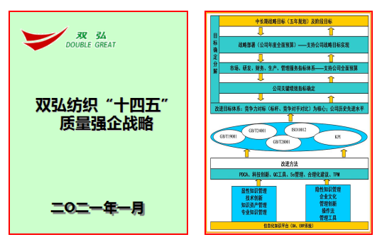 Kvalitet er livet til en bedrift. Som senior i selskapet har kamerat Ji Yijun alltid betraktet kvalitetsforbedring som selskapets topp prioritet i mer enn 40 år. Under skipet og innflytelsen hans har Double Great Company introdusert og implementert Performance Excellence Management -modellen siden 2007, og dannet oppdraget til "hvert garn er verdien av solskinn", kjerneverdiene for "innovasjon, kvalitet, integritet og harmoni", og visjonen om "levetid i livet, eviggrønn dobbel stor". Det raffinerte sloganet for styring av kvalitetsstyring "Uansett hvor liten kvaliteten er, er det en stor sak, uansett hvor vanskelig kvaliteten er, det må gjøres bra, og ansatte som ikke tar hensyn til kvalitet er ikke gode ansatte" har blitt integrert i selskapets kvalitetsbegrep, og kvalitetsarbeidet "Kvaliteten har blitt et kvalitetsbegrep som er kjent for å være kjent for å ha et kvalitetskarpsjon, og kvalitetsarbeidet. Tekstilnyheter.