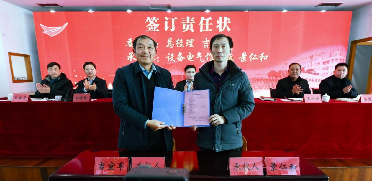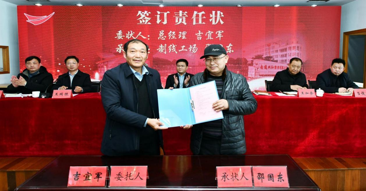 Med ett mål og ett sinn streber vi etter å implementere reformstrategier. Vi legger vekt på politisk ledelse og bygger et team av ansatte. Vi legger vekt på gjenstandens gjenstand og stimulerer vitalitet. Vi legger vekt på en fabrikk med flere systemer og oppmuntrer til fusjoner og anskaffelser. Vi legger vekt på arbeidseffektivitet, sentralisert styring av selskapet og hierarkisk ansvar fra avdelinger. Enhet er styrke, og kamp skaper fremtiden. Kamerat Ji Yijun håper at alle doble flotte mennesker vil være trygge, håpefulle, banebrytende, G og initiativrike med ånden til en slange som kan reise tusenvis av miles, ta initiativet i vanskeligheter, klatre over hindringer i motgang og jobbe hardt sammen for å bygge en langvarig dobbel stor og skape en bedre fremtid. Lederen for markedsavdelingen signerte et brev med markedsføringsmålsansvar med styreleder Yang Yang, og sjefen for produksjonsverkstedet og utstyret Electrical Maintenance Team signerte Workshop Target -ansvarsbrevet og utstyrets elektriske arbeidsansvarsbrev med daglig leder Ji Yiju, N.